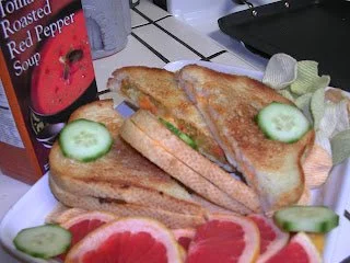 - Serve it with fruits and chips, and with soup bought from Trader Joe's.