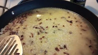 When the rice is nearly cooked, pour in the other half cup of coconut milk and reduce the heat to low and cover it until the liquid is seen to be fully absorbed and the rice is well cooked but not pasty. Turn off the heat.