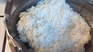 Start with 4 cups of jasmine rice, washed and set to dry.