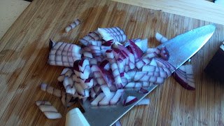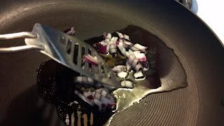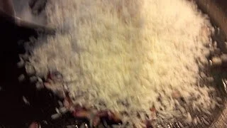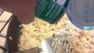 Sautee the dried rice with the onions. Add salt to taste and a little sugar.