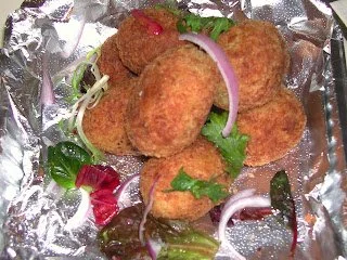 The temperature of the oil should be constant throughout the frying process. The croquettes should look golden brown in color. Lay them on a paper towel to drain out excess oil.