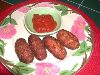 To make the croquettes, take a spoonful of the mixture and shape it oblong in your palm, dip it in the beaten egg, then roll it in the bread crumbs and deep fry. Serve hot with salad.