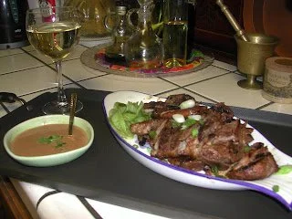 Then slice them thin and serve hot with rice and salad. I served them with Peanut Satay sauce (click here).