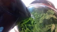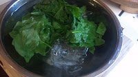 Put it in a cold water bath. Squeeze the water out from the spinach.