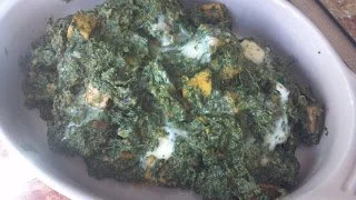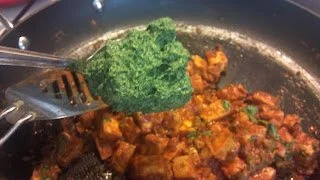 This is not a traditional Palak Paneer. We don't steam the Palak (spinach).